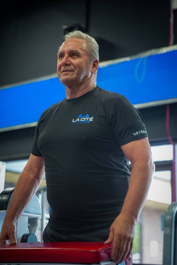 Custom Muscle Fit Tee featuring the gym's logo and the client's name